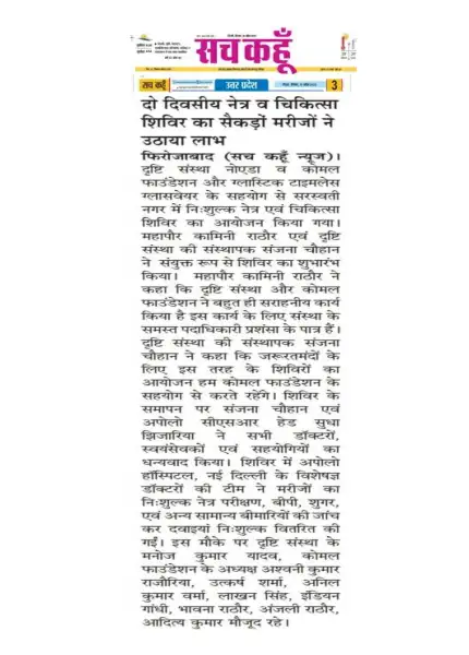 कक्षा 11 की छात्रा संजना चौहान ने "दृष्टि" अभियान की शुरुआत की, जिसका उद्देश्य वंचित बच्चों को निःशुल्क नेत्र जांच और चश्मे प्रदान करना था, जिससे दिल्ली एनसीआर में 8,000 से अधिक बच्चों पर सकारात्मक प्रभाव पड़ा। अब उनका योजना है कि इस पहल का विस्तार कर सर्जरी को भी शामिल किया जाए।